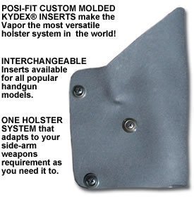 Kydex Insert fits MPH and Vapor Holster platforms POSI-FIT CUSTOM MOLDED KYDEX INSERTS make the Vapor and Multi-Position Holster the most versatile holster system in the world! INTERCHANGEABLE Inserts available for several popular handgun models. ONE HOLSTER SYSTEM that adapts to your side-arm weapons requirement as you need it to. Available in assorted colors.